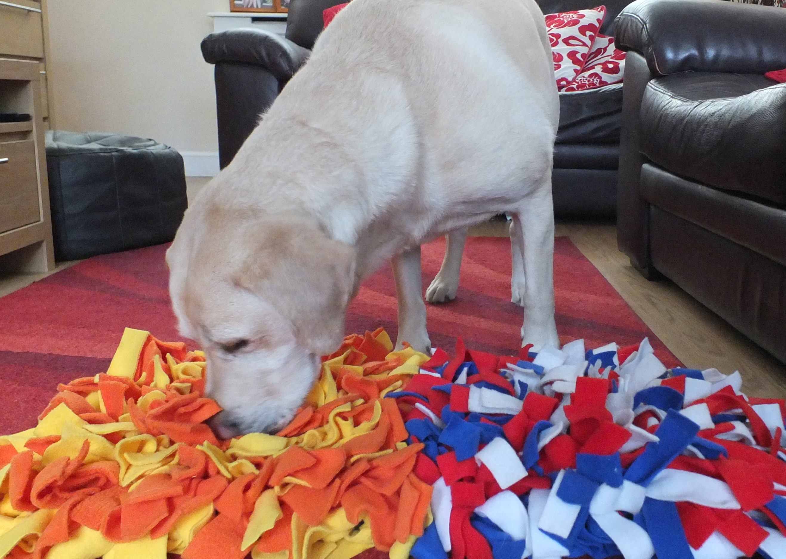 Dogs are quite expert at reading our body language and learning cues. For example, my dog is well aware that I often stand up after I finish a cup of tea and he notices how I drink the last little bit and he’s up and ready to see where I’m off to. The same happens when I begin to shut down my lap top, he knows by the way I hit the final key that I’m about to shut it down and that I’m probably about to get up and do something else.  He certainly has no problem learning my pattern of behaviour when I’m about to scatter some food for him to find. No formal cue is needed, he knows that my behaviour in this context predicts scatter feeding.  His behaviour totally changes, he becomes fully engaged in using that outstanding olfactory ability to find every piece of scattered food.  Dopamine in the brain rises at the opportunity to gain reinforcement (or appetitives) and this is the big difference between bowl feeding and enrichment feeding;  It feels fantastic to the dog and is highly stimulating.